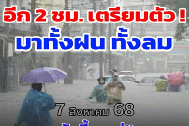 วันที่ 7 ส.ค. 2568 พยากรณ์อากาศ 24 ชั่วโมงข้างหน้า ประเทศไทยตอนบนมีฝนฟ้าคะนอง โดยมีฝนตกหนักบางพื้นที่ในบริเวณจังหวัด แม่ฮ่องสอน เชียงใหม่ เชียงราย ลำปาง พะเยา น่าน และบึงกาฬ ขอให้ประชาชนในบริเวณดังกล่าวระวังอันตรายจากฝนฟ้าคะนอง ลมกระโชกแรง และฝนตกหนักที่อาจจะเกิดขึ้นไว้ด้วย เนื่องจากมีหย่อมความกดอากาศต่ำปกคลุมบริเวณประเทศลาวตอนบนและเวียดนามตอนบน ประกอบกับมรสุมตะวันตกเฉียงใต้ยังคงพัดปกคลุมทะเลอันดามัน ประเทศไทย และอ่าวไทย สำหรับคลื่นลมบริเวณทะเลอันดามันตอนบนมีกำลังปานกลาง โดยมีคลื่นสูง…