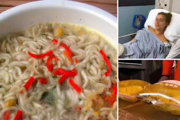 หากใครที่เคยได้ยินเรื่องอาหารที่ห้ามกินคู่กัน 1 ในนั้น ก็จะมีบะหมี่กึ่งสำเร็จรูปและน้ำอัดลมที่เป็นของแสลงห้ามกินคู่กัน เพราะมันจะไปทำปฏิกริยาร่วมกันในกระเพาะ อาจจะทำให้ท้องอืด ปวดท้อง และถึงขั้น เข้าโรงพยาบาล เรื่องนี้ยังยืนยันไม่ได้ว่าเป็นเรื่องจริงหรือเปล่า แต่วันนี้ มีตัวอย่างที่เกิดขึ้นจริงกับหนุ่มคนหนึ่งในประเทศจีน ที่เขาได้ทาน บะหมี่กึ่งสำเร็จรูป มันเทศ และน้ำอัดลม จนทำให้เขามีอาการแบบนี้ .. ที่เมืองหางโจว ประเทศจีน มีผู้ชายคนหนึ่งต้องเข้ารับการรักษาฉุกเฉินเนื่องจากปวดท้องมาก หลังจากที่เขาได้สแกน X-ray หมอตรวจพบว่ากระเพาะของเขาขยายตัวขึ้นผิดปกติ จึงตัดสินใจต่อท่อเพื่อนำลมภายในกระเพาะออกมา…