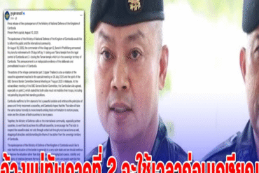กลาโหมกัมพูชา ออกแถลงการณ์ด่วน หลัง แม่ทัพภาคที่ 2 ประกาศแผนก่อนเกษียณ อีกเพียง 51 วัน
