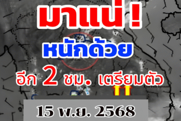 15 พฤศจิกายน 2568 พยากรณ์อากาศ 24 ชั่วโมงข้างหน้า ประเทศไทยยังคงมีฝนฟ้าคะนอง และมีฝนตกหนักบางแห่งในภาคกลาง ภาคตะวันออก และภาคใต้ตอนบน ในขณะที่ภาคตะวันออกเฉียงเหนือจะมีอุณหภูมิลดลง 2-4 องศาเซลเซียส กับมีลมแรง ส่วนภาคเหนือจะมีอุณหภูมิลดลง 1-2 องศาเซลเซียส เนื่องจากบริเวณความกดอากาศสูงหรือมวลอากาศเย็นกำลังปานกลางจากประเทศจีนได้แผ่ลงมาปกคลุมภาคตะวันออกเฉียงเหนือแล้ว คาดว่าจะแผ่ปกประเทศไทยตอนบน และทะเลจีนใต้ในวันนี้ (14 พ.ย. 68) ส่งผลให้มีลมตะวันออกและลมตะวันออกเฉียงใต้พัดนำความชื้นเข้ามาปกคลุมภาคตะวันออก ภาคกลาง…